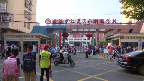 在东湖路学校,弘志街实行限时限行,车辆即停即走,警校家护学岗相互配合,引导学生入校。在校园内,同学们按照学校安排列队返回各班学习,整个过程秩序井然。