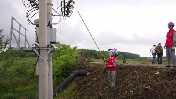 5月22日上午,记者随江夏区供电公司“鄂电红马甲”一同来到位于山坡街官南村的官南垸排涝泵站,进入站内,供电人员帮助泵站更换了三根新的高压跌落式熔断器的保险丝,并全面检查泵站供电电源配置、线路通道、二次保护系统等电气设备,为当天泵站试机运行做保障。