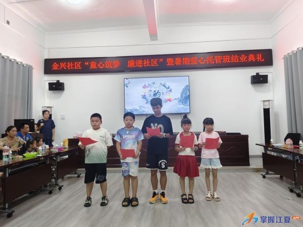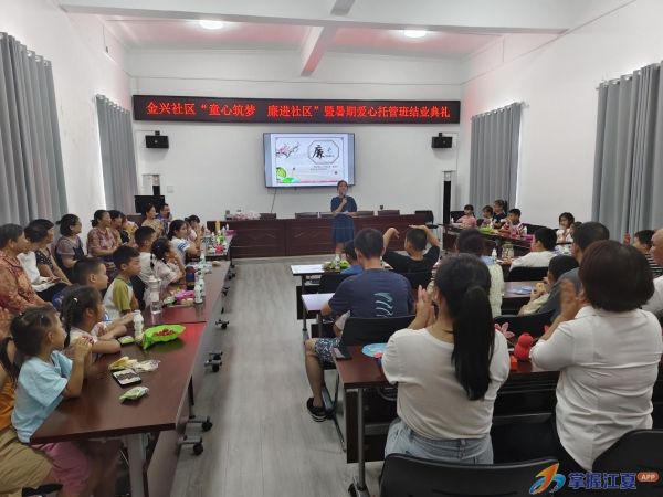 “幼鸟飞Young”暑期爱心托管班是金兴社区自去年起积极回应职工家庭无暇照管子女的诉求,响应“双减”政策,联合湖北经济学院金融学院“金苗”支教队采用校社合作托管模式实施的暑期爱心托管班。在结业式上,孩子们“变身”歌唱达人、小品名角、舞蹈天才,为大家带来精彩绝伦的表演。最后,结业式在金兴社区全体工作人员为大家朗诵的《廉洁颂》声中圆满结束。