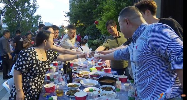 居民雷先生高兴地表示,参加这样的活动既能认识更多邻居,也能让孩子们结交新朋友,就像一个大家庭的聚会。他带来的红烧鱼受到了邻居们的好评,这样的分享让他感受到浓浓的邻里温情。居民陈女士也分享道,一开始还担心和邻居不熟悉会尴尬,但现场热烈的氛围很快消除了这份顾虑,一顿饭的工夫就和隔壁楼的邻居熟络起来,她认为这类活动特别有意义,希望能经常举办。