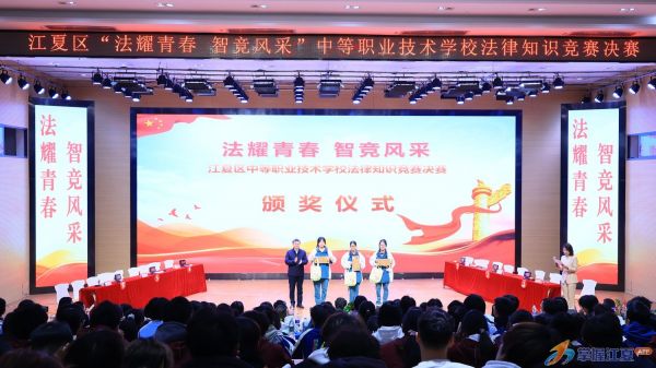 最终,武汉榕霖职业技术学校代表队斩获一等奖,武汉智工职业技术学校、武汉明德电子科技技工学校获二等奖,武汉高科技工学校、武汉光谷科技职业技术学校、武汉市江夏职业技术学校获三等奖,武汉凡谷电子职业技术学校等3所学校获优秀奖。区委依法治区办、区委政法委、区教育局、区法院、区检察院、区公安分局、区司法局、区法学会及湖北楚智律师事务所的领导专家现场观摩,见证学子们的法治风采。
