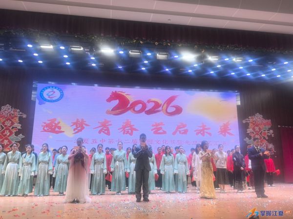 2025年12月31日下午,江夏区第五中学“逐梦青春,艺启未来”校园艺术节文艺汇演在校内隆重举行。全校师生齐聚一堂,共同迎接新年,以一场高质量的艺术展演展现学校美育成果与师生昂扬风貌。
