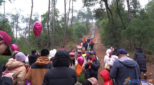 早上九点,登山爱好者们便陆续抵达山脚,准备以登高望远的方式迎接新年。蜿蜒的山路上,人们三五成群,有说有笑地向上攀登。沿途悬挂的红灯笼和祈福带随风飘扬,为登山活动增添了浓浓的年味。不少家庭都是全家出动,既有精神矍铄的老人,也有活力四射的年轻人,还有蹦蹦跳跳的孩童,构成了一幅其乐融融的新年画卷。