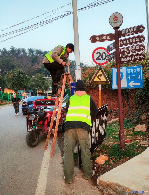 大青八户外运动村爆火出圈,菜农嗅到商机,在青龙山环山路口、地铁小镇站周边形成了临时摊位区,元旦假期旅客数量预计迎来新高,江夏城管面临的一大难关就是,如何既能保住菜农的“生计路”,又不让它成为游客的“堵心路”?经过多轮协商,区城管执法局指导纸坊街综合执法中心以“共情”破题,在附近的桔子红农庄停车场划出专属区域,搭建起13个便民棚,设立“农副产品临时售卖点”,巧妙地将无序杂乱的流动菜摊转化为有序野趣的农家风景。青龙山冰雪彩灯极光夜启动前,江夏城管还开展了不规范广告招牌的集中整治,无声地为游客扫清了视觉障碍。元旦节前,大青八和青龙山周边的违规广告招牌共计拆除45处,有效提升了城市面貌的整洁度、有序度和美观度,让游客第一眼就能感受到江夏的良好形象。
