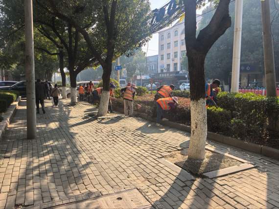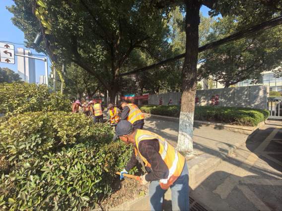(1)主干道沿线:绿化公司调配35名工人、3名管理人员及1台农用车,对纸金路沿线绿化带开展集中清理——26人重点清除落叶、枯枝、杂草及垃圾杂物,7人负责后续清扫与装车转运,2人同步完成绿植施肥养护,实现“清、运、养”一体化作业。