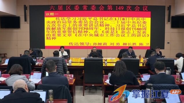 1月22日,区委常委会召开第149次会议,传达学习习近平总书记在1月8日中共中央政治局常务委员会会议、二十届中央纪委五次全会上的重要讲话精神,致解放军报创刊70周年、科技日报创刊40周年的重要贺信精神,在《求是》杂志上发表的重要文章《在中央城市工作会议上的讲话》精神,研究我区贯彻落实措施。区委书记舒贵传主持。