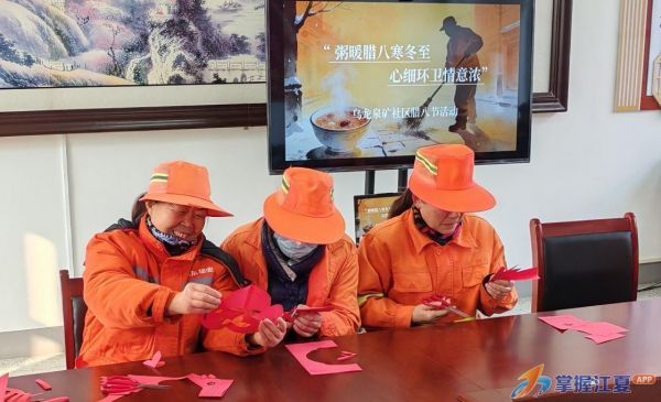 乌龙泉街乌龙泉矿社区工会驿站:剪纸品粥庆腊八关怀环卫暖寒冬