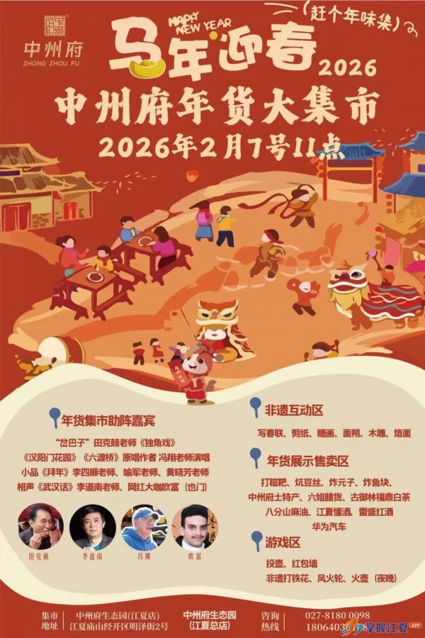 还有《都市茶座》名家、李道南重磅加盟,自带汉味底蕴,用精湛的表演传递江城韵味;网红达人欧富惊喜登场,解锁新潮互动玩法,承包你的朋友圈素材,让逛集更有乐趣!