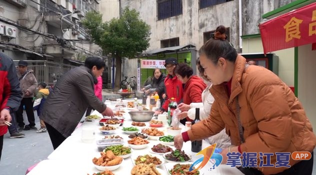 “我带来了猪油炒饭、刁子鱼和招牌腌菜萝卜条。今年第一次参加,感觉社区很和睦、邻里很团结,切身体验非常好。”居民罗进峰笑着分享。另一位居民张舜钦则表示,菜肴口味比较清淡,更适合老人,言语间透露出对邻里关怀的细致体察。