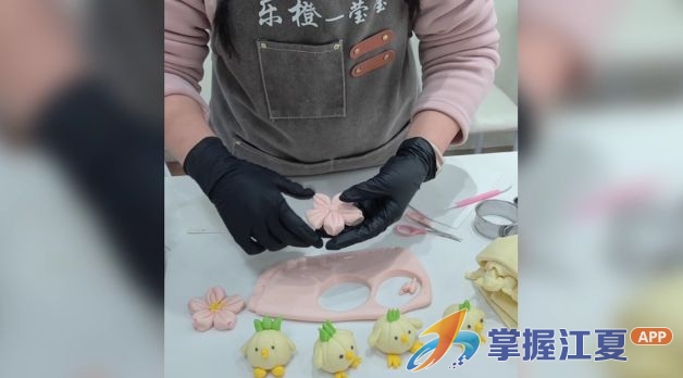 走进乐橙面包店,这里正在上着一堂特殊的烘焙体验课,几名烘焙爱好者围成一圈,跟着店长李莹学习花馍的基础制作技艺。揉、捏、剪、压,李莹一边演示一边讲解,面团在她手底焕发生机,烘焙爱好者们认真聆听,尝试制作,结合各自的新想法,金元宝、福袋、樱花相继成型。
