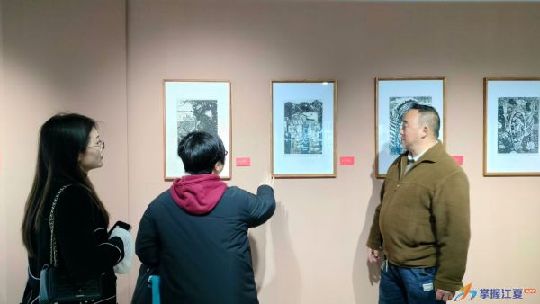 开幕式上,湖北省工艺美术大师、汉派木刻非遗传承人朱明代表创作者发言,他动情讲述了自己“一生择一事,一事终一生”的木刻情怀,并将精心创作的马年年画《楚韵·烈马》及联名文创日历本,亲手赠送给版画基地校学生代表,让文化根脉在代际传递中赓续延伸。江夏区版画基地校代表、一初中军运村校区校长张彦君分享了版画基地校深耕美育进校园实践,将木刻版画引入校本课程,让孩子们在刀锋起落间感受传统技艺魅力,创作的版画作品屡获佳绩并登上专业展馆舞台,让文化自信在青少年心中扎根生长。会上还发布了江夏非遗木刻年画线上视频课程,观众可通过“江夏区文化馆”公众号扫码学习,让非遗传承触手可及,让美育教育跨越时空、惠及更多人群。