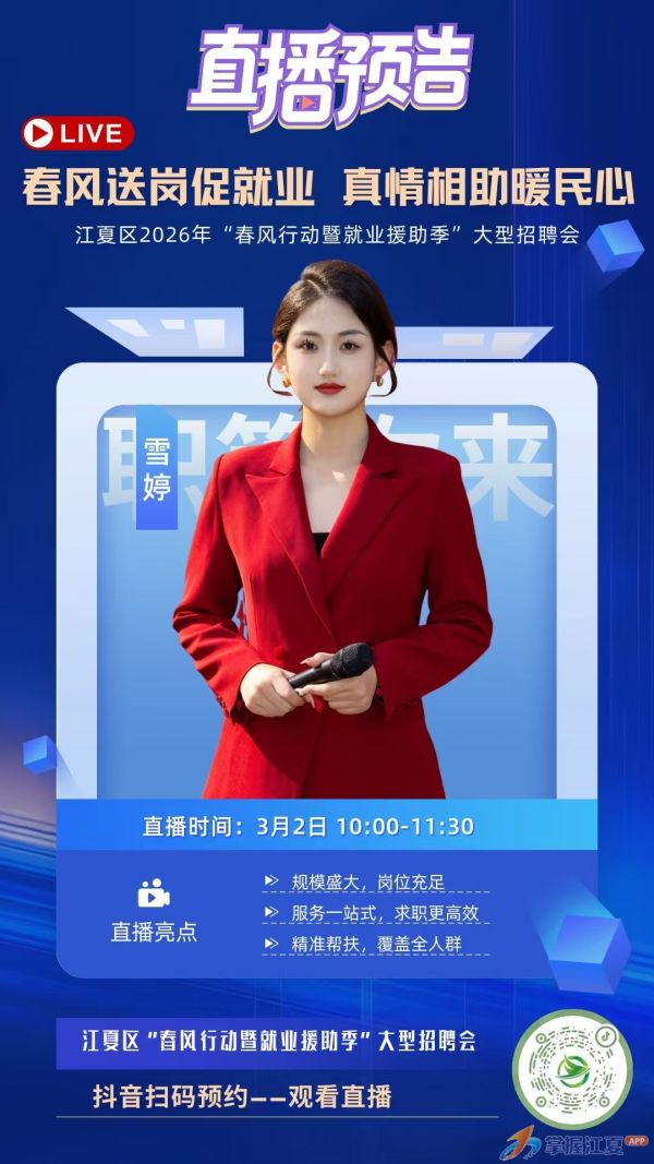 江夏区2026春风行动大型招聘会倒计时1天!200+名企携10000+岗位集结,智能制造、新能源、现代服务三大赛道火力全开!现场解锁直播带岗+简历急救+政策直通服务包。高校毕业生、退役军人、技能工匠、就业困难人员——总有一岗为你定制!3月2日,江夏区体育馆,好工作不等人,带简历来,带offer走!