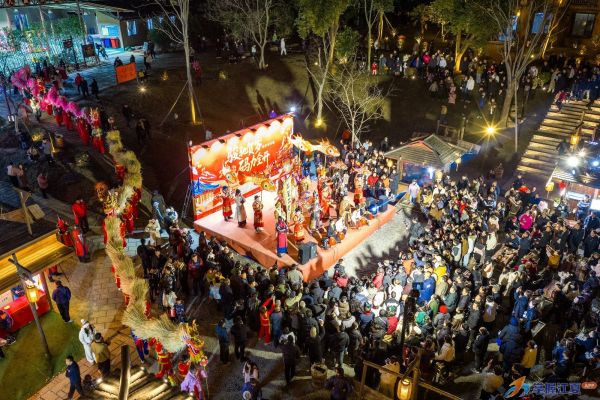 作为江夏春节文化活动的另一主阵地,谭鑫培公园同步推出“戏曲贺团圆·元宵赏春”主题活动,将“江夏味·中国年”春节民俗系列活动推向圆满收官。武汉京剧团带来的大戏《红鬃烈马》预约爆满,现场座无虚席;《定军山》三代黄忠扮演者同台登场,与草把龙、荷花龙同台共舞,引得万人观赏。夜幕降临,戏楼在六百个元宵彩灯的装饰下流光溢彩,猜灯谜、夹元宵、钓元宵、投壶、蹴鞠等传统游戏让节庆升温,百家姓花灯区、主题灯谜区与河灯祈福区更让市民在流光溢彩中感受传统节俗的乐趣。