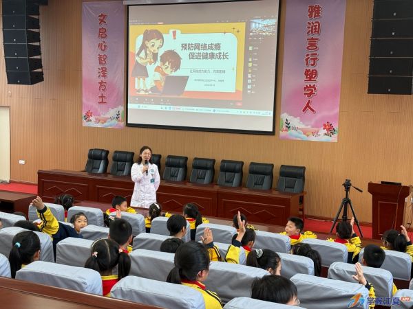 4月10日,江夏区实验小学熊廷弼路校区开展“健康进校园”活动,邀请健康副校长涂晓丹为全校中高年级学生作“预防网络成瘾,促进健康成长”主题宣讲。