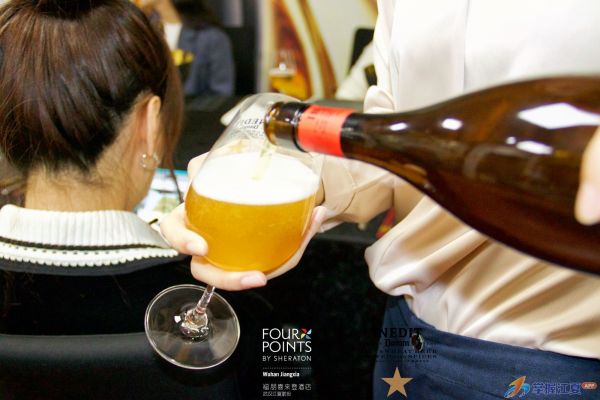 作为晚宴核心搭档,艾帝达姆大星啤酒以西班牙进口麦芽为原料,融合芫荽、橙皮与甘草的复合香气,口感清爽回甘,既能中和肉类油腻,又能衬托海鲜鲜甜,独特风味与每一道菜品都碰撞出别样味蕾火花。现场宾客举杯共饮,啤酒的星芒与晚宴的星光交相辉映,微醺氛围拉满,大家在欢声笑语中,品味风味盛宴,感受跨界魅力。