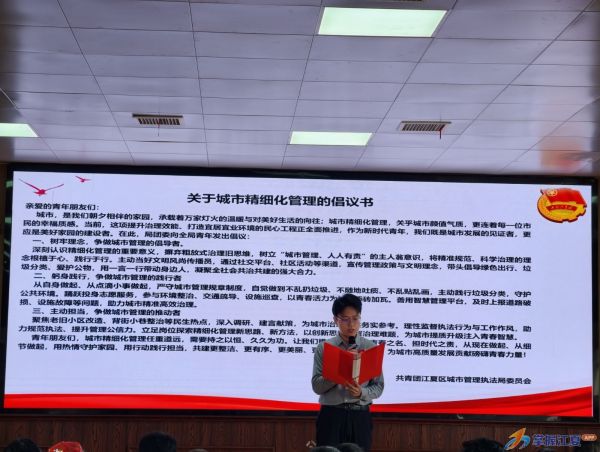 青春由磨砺而出彩,人生因奋斗而升华。随后展示了“城管青年说”我的城管青春系列短视频,结合城管工作实际,青年们围绕“新时代城管人的使命与担当”展开讨论。“青春守街巷,分类筑文明,洁净伴朝夕,共治美家园”;“水政执法守底线,青春护航水长清”;“青年有为城管人,城市有我更安心;守护江夏灯火暖,助力夜间经济兴!”。这不仅是城管青年们的豪迈宣言,更是他们积极作为的真实写照。街巷中穿梭、夜色中坚守、精细管理中深耕,城管青年用实际行动践行挺膺担当和青春智慧。
